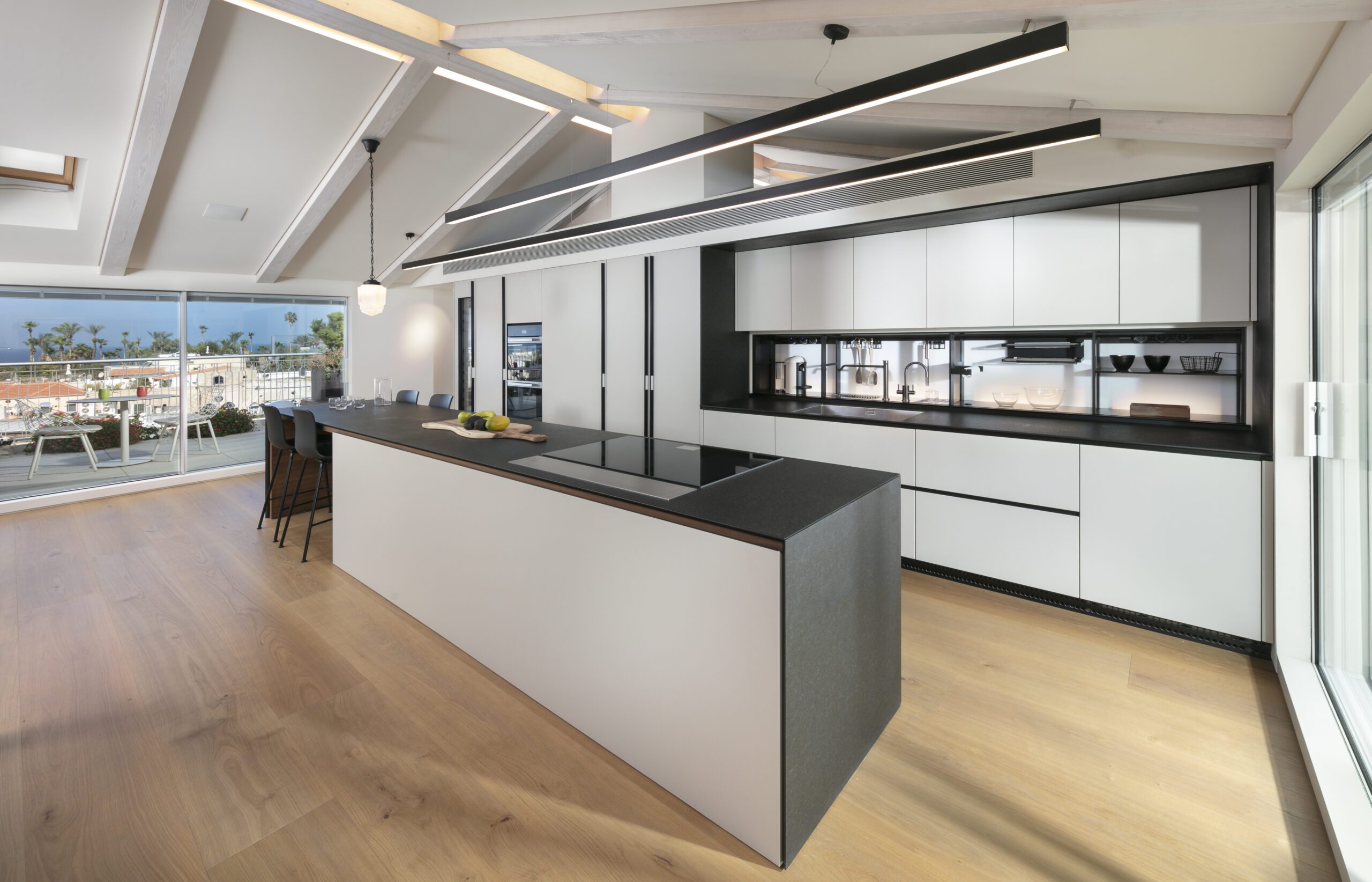 Renovation of a duplex with a complex roof with a beautiful see view